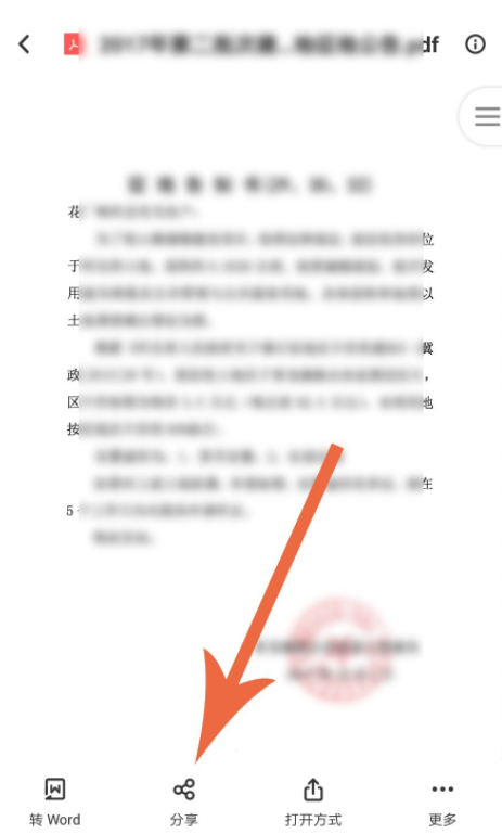 在手机中打开百度网盘,进入界面,这里打开一分 PDF 文档,点击下方“分享”,