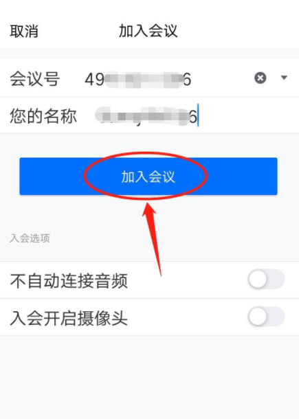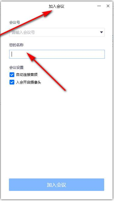 跳转界面,输入会议号和自己的名称,然后点击“加入会议”,