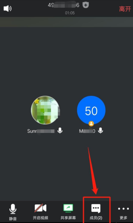 进入会议窗口,在页面底部点击“成员”选项,