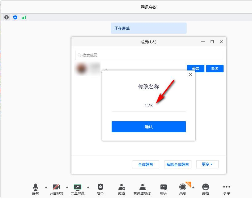 腾讯会议如何在会议过程中修改名字?
