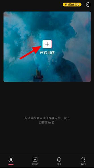 在手机中打开剪映 APP ,进入界面,点击“开始创作”,