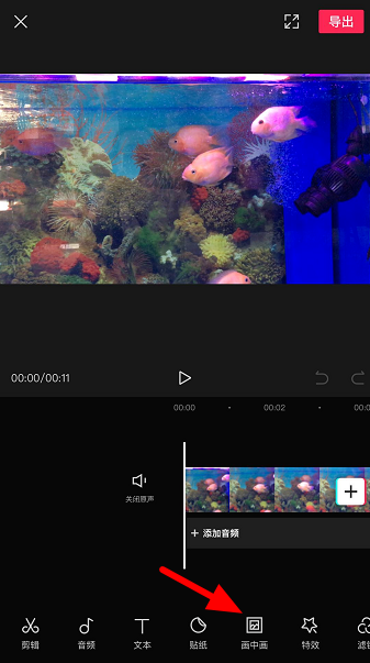 进入视频剪辑窗口,在下方工具栏点击“画中画”,选择“新增画中画”,
