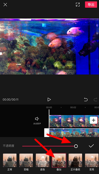选择“叠加”或其他画中画效果,拖动小圆点可以调整透明度,然后点击“√”,