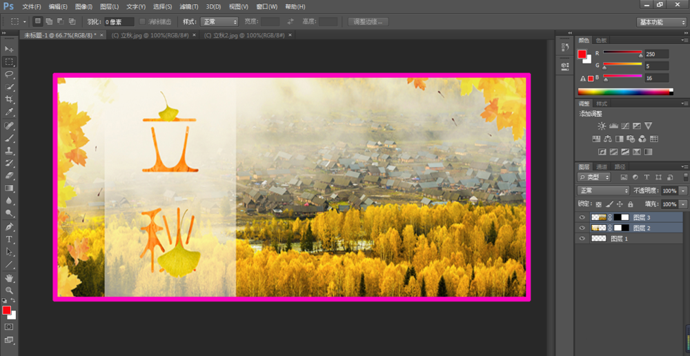导入准备好的两张图片,最好是内容相似、颜色相近,如图,