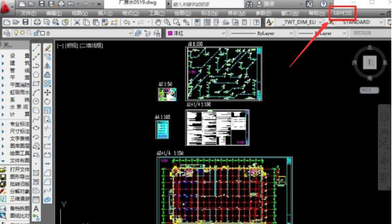 2. 然后,打开 CAD 绘图软件。在软件右上方找到并点击 “SBP打印” 按钮,启用 Smartbatchplot 。