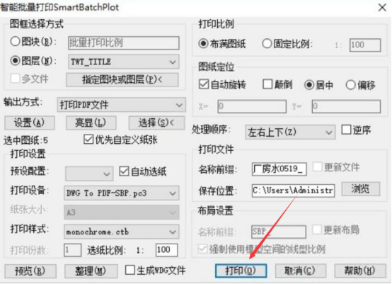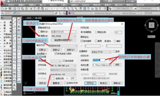 3. 进入 Smartbatchplot 批量打印的设置窗口,参考如下图对相关的内容进行设置。