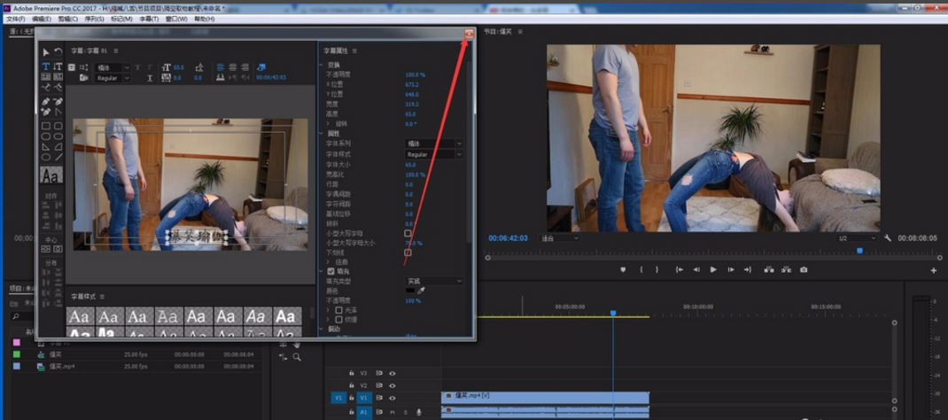 10. 字幕编辑好之后,点击字幕编辑框右上角的关闭按钮关闭编辑框。