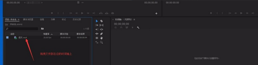 2. 把导入的视频素材拖拽到右侧的时间轴上。