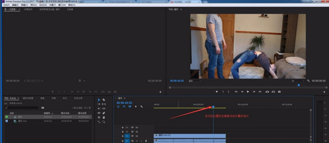 3. 在时间轴上把光标移动到需要添加字幕的地点。