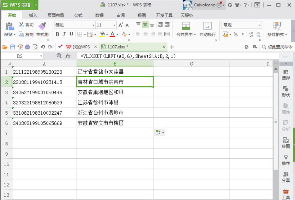 下拉填充就可以将所有身份证号码对应的地区显示出来了。