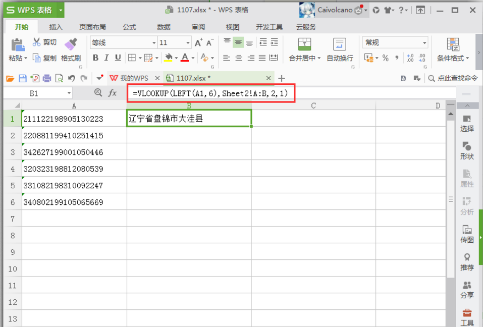 查找 A 1 单元格的前六位数字,去 sheet 2 表格的 A、B 列查找相同的数据,然后返回对应列中的数据。