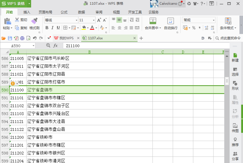 想知道身份证归属地区,那肯定得知道身份证前六位对应的归属地。这里有一份数字与地区相对应的 Excel 表格,就像下图展示的一样,相当于一个小数据库,如果没有这个,也是无法对应起来的。