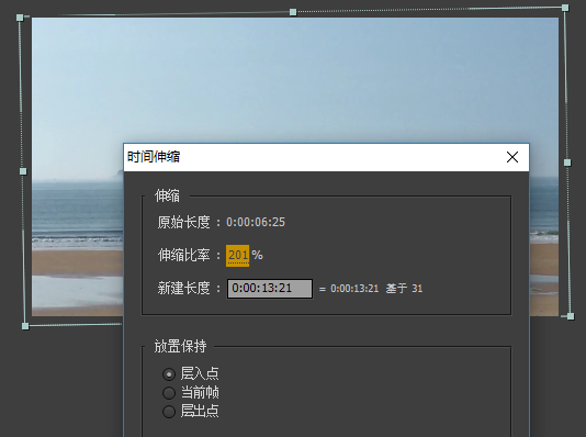 这里我们可以设置伸缩比例,大于 100 是减慢播放速度,小于 100 是加快播放速度,