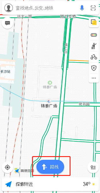 1.首先打开高德地图 App ,进入页面,点击“路线”,