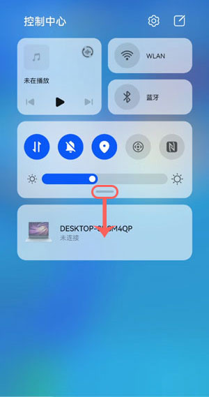 2、在手机顶部的右侧,长按并下滑打开控制中心;