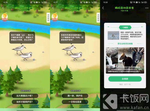 勺嘴鹬的任务:给爱心捐赠野心动物项目捐赠一次,可选择捐赠一元或者一分;
