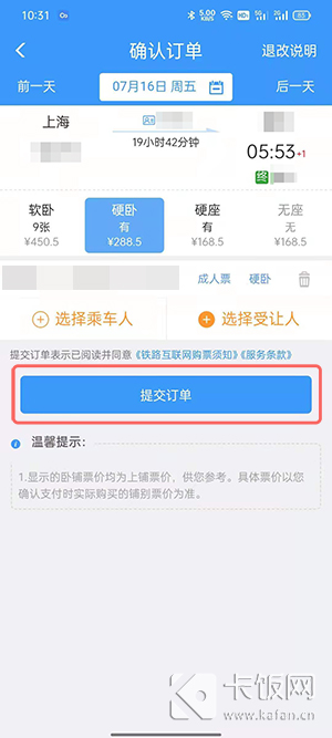 6、返回确认订单信息页面后,点击【提交订单】;