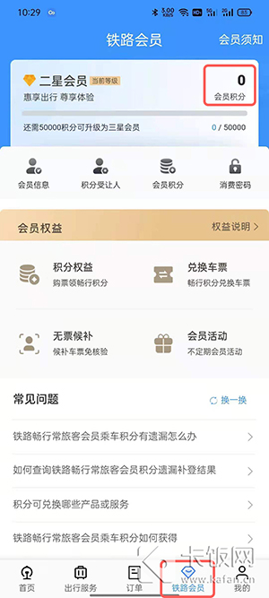 Tips:会员积分累积到10000分时,才会拥有积分兑换车票资格。