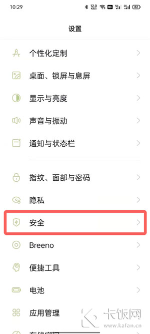 2、在设置中滑动找到【安全】设置;