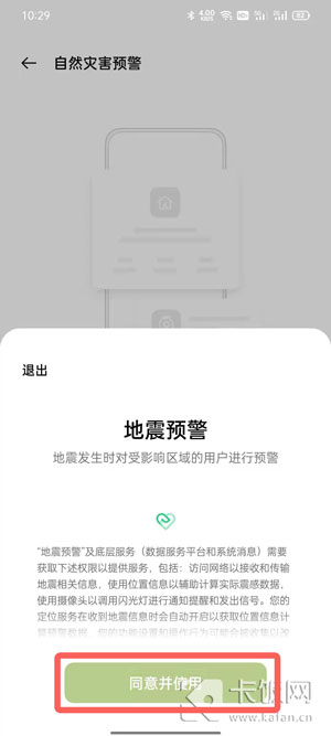 6、【同意并使用】同意地震预警获取自己的位置信息;