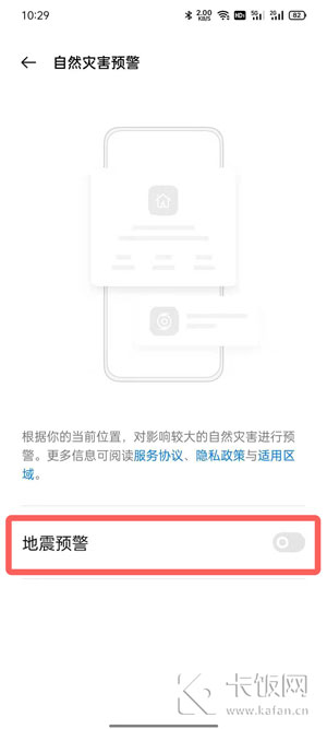 5、点击【地震预警】右侧的滑块开启地震预警功能;