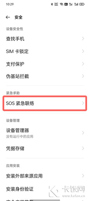 3、点击【SOS紧急联络】功能;