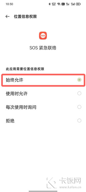 7、需要注意的是,地震预警需要设置为【始终允许】权限,可在应用权限中进行设置;