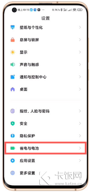 2、在设置中找到【省电与电池】设置;