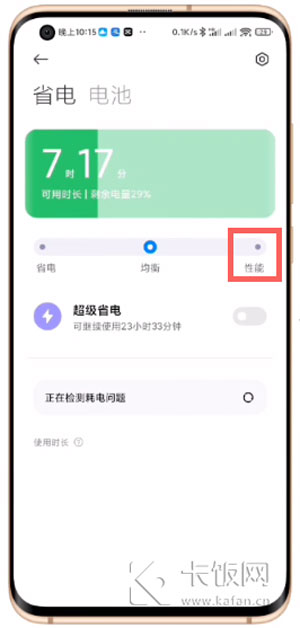 3、通过省电界面,点击【性能】模式;