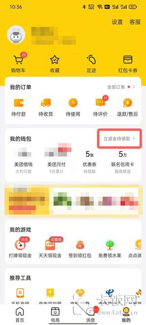 3、在钱包中,点击上方的【立减金】;