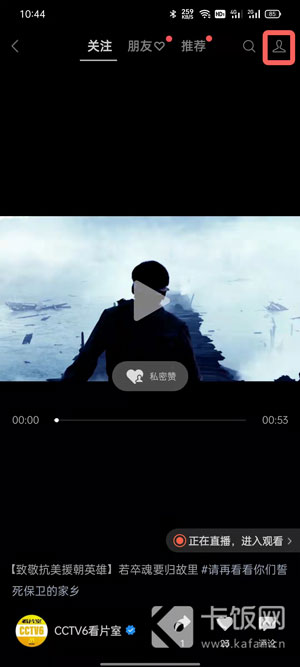 1、在微信打开视频号后,点击右上角的【人头】图标进入;
