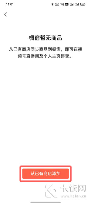 4、点击【从已有商店添加】按钮,从自己开通的小商店中选择商品在视频号中展示;