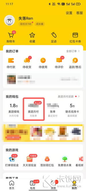 2、在进入我的界面内后,在“我的钱包”中点击【美团月付】;