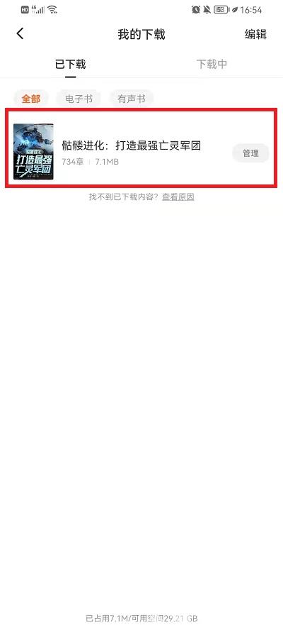 5、然后在我的下载界面,就可以看到下载的小说,就可以点击进行离线观看。