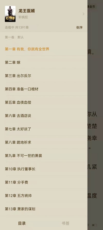 2、然后在小说内容界面,点击屏幕中间,唤出小说设置界面,然后点击左下角的【目录】进入到目录章节之中;