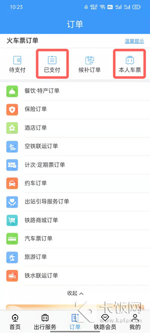 2、在火车票订单下,选择【已支付】或者【本人车票】进入,找到需要退票的订单;