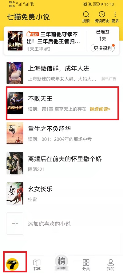 3、在书架上的小说,想要进入到听书模式中的话,就需要进入到书架界面中,然后点击想要听书的小说;