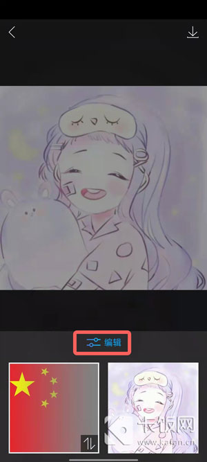 4、点击下方的【+】按钮,分别导入保存的两种图片,选中国旗图片,点击【编辑】;