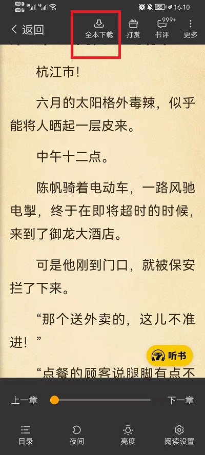 2、在小说的详情介绍界面之中,上方会有一个【下载全本】按钮,点击就可以下载我们想要下载的这本书;