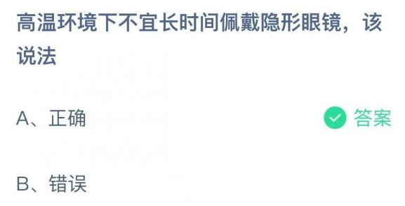 问题:高温环境下不宜长时间佩戴隐形眼镜,该说法?