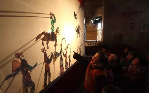“远看灯火照,近看像个庙,里头人马喊,外面哈哈笑”这则谜语形象地写出了“牛皮灯影子”,也就是“皮影戏”,以在灯光照射下用兽皮刻制的人物隔亮布演戏而得名,是我国民间广为流传的傀儡戏之一。