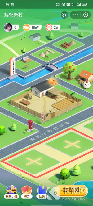 6、想要邀请好友来自己的蚂蚁新村摆摊,在进入蚂蚁新村后,点击空余的摊位;