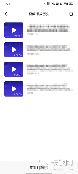 5、点击上方【视频播放历史】即可查看视频播放历史记录。
