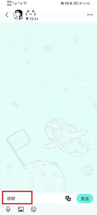 3、在聊天界面中,我们可以输入自己国家的语音,发送过去之后,好友会接收到中文,但是会出现翻译按钮,点击翻译按钮,就会翻译成该用户设定的自己国家的语言,非常的便捷。