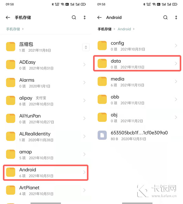 Tips:“data”文件夹受到系统权限限制,需在文件管理应用找到找到对应文件夹,根据提示跳转至“文件”应用再继续操作。
