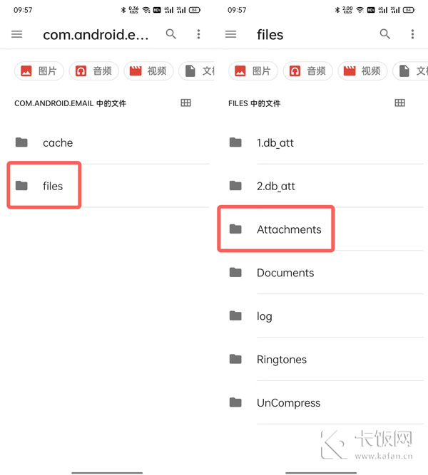 5、依次打开文件夹下的【files>Attachments】文件夹;