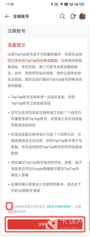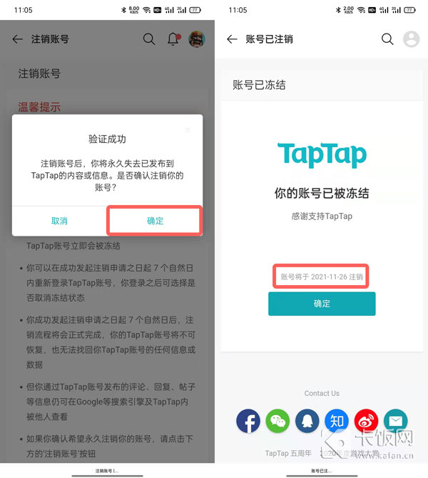 2、账号注销后会有7天冻结日期,在这期间可随时登录账号申请取消冻结,七天之后则成功注销;