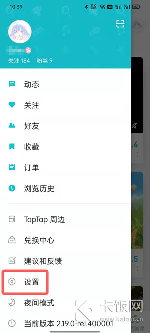 2、如果需要修改,则打开taptap应用,点击右上角的【头像】点击【设置】,也就是倒数第四个选项;
