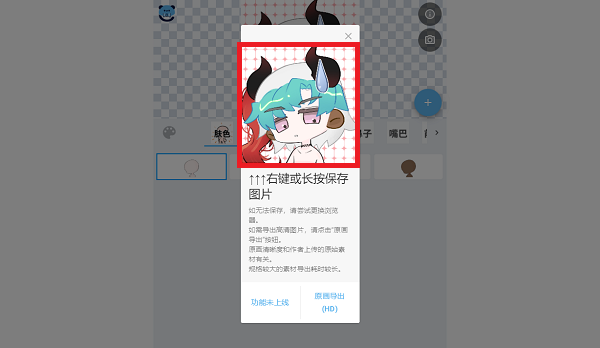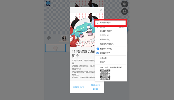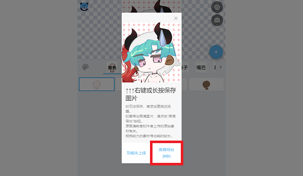 4、如果需要保存高清图片,则点击右下角的【原画导出(HD)】按钮来保存图片,然后再长按、右键保存。