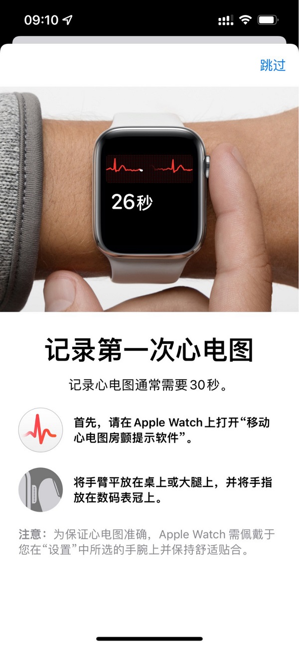 -首先,请在 Apple Watch 上打开“移动心电图房颤提示软件”。